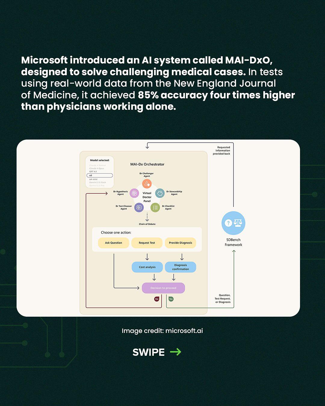 Ai in medico is going next level. Microsoft’s new AI doctor doesn’t just assist, it debates. A team of 5 AI agents now diagnoses complex cases better than human doctors.