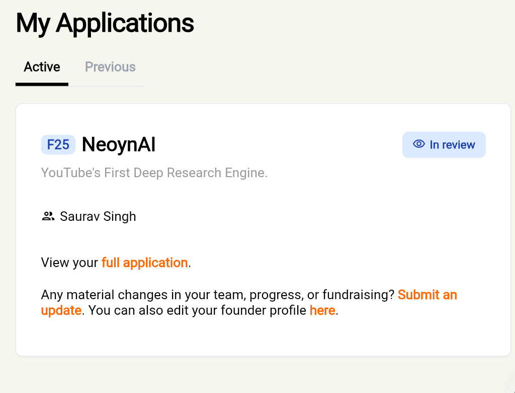 YC F25 - application sent Let's build NeoynAl into the future of research.