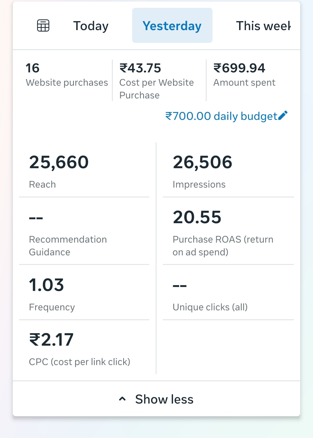 yesterday meta ads results