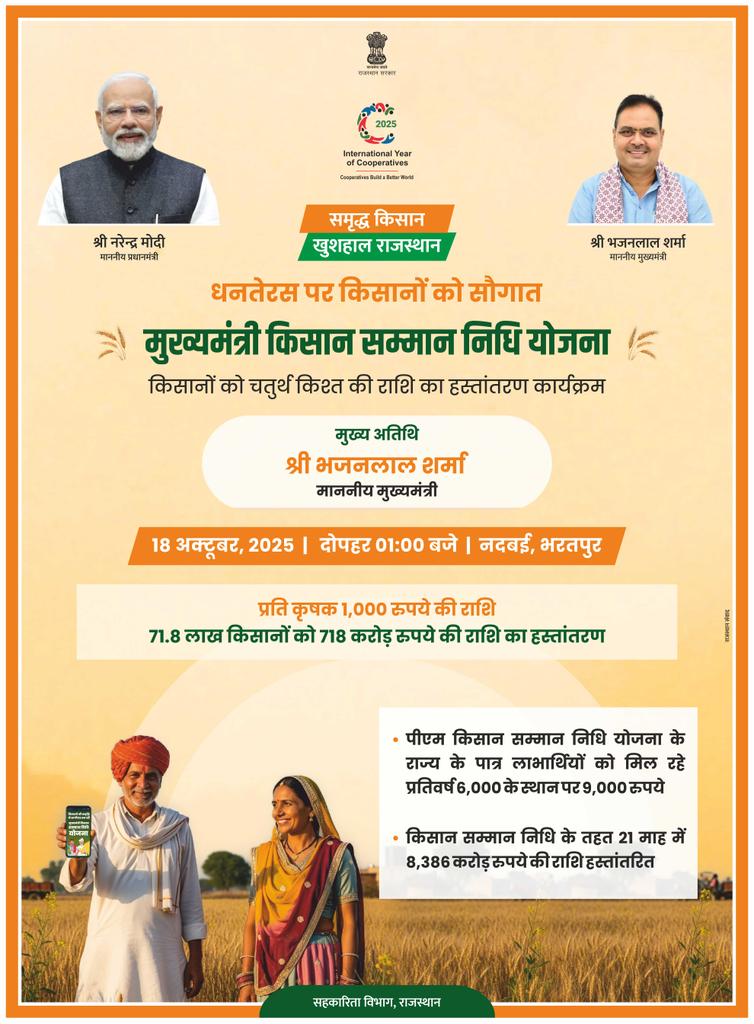 राज्य सरकार ने मुख्यमंत्री किसान सम्मान निधि योजना के तहत 71.8 लाख किसानों के खातों में ₹718 करोड़ की राशि ट्रांसफर कर दी है। यह चौथी किस्त किसानों की मेहनत और सरकार की प्रतिबद्धता दोनों को दर्शाती है। अब किसान भाई यह जान सकते हैं कि उनकी किस्त उनक