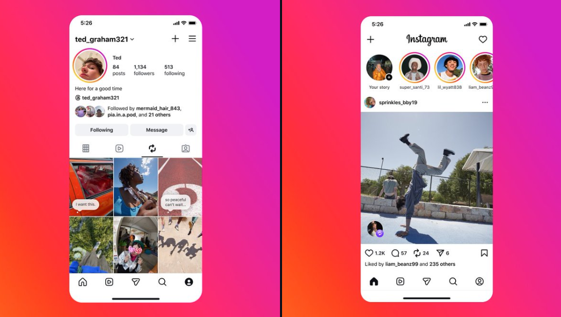Instagram introduces Reposts. Profiles will have a “reposts” tab and your reposted content can also show up in your friends’ feeds.