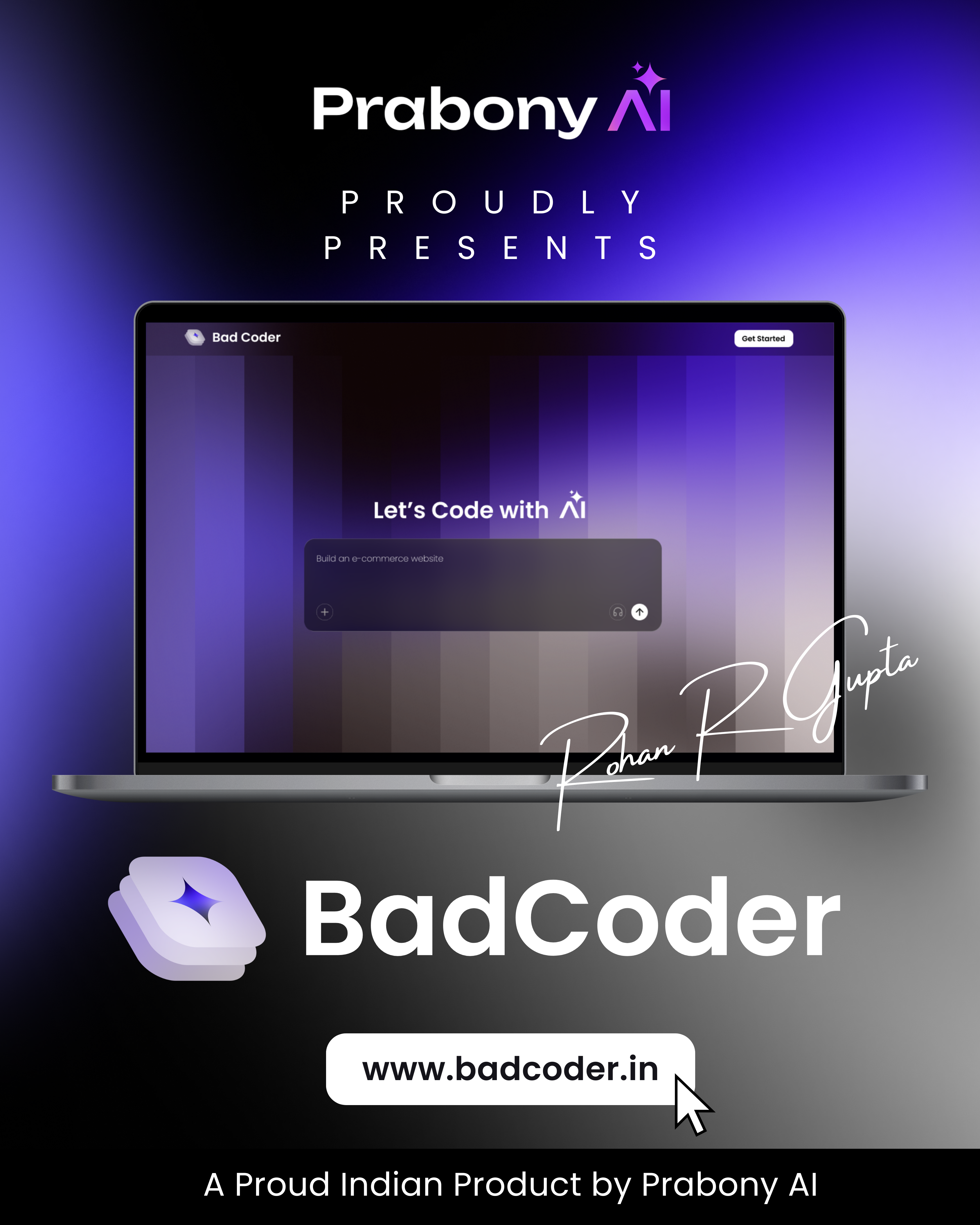 Hey , We are pleased to launch our first product from Prabony AI , BadCoder an AI platform which builds websites with a single prompt in just 100 seconds Visit now to www.badcoder.in and build your website with BadCoder u can also find it on Pro