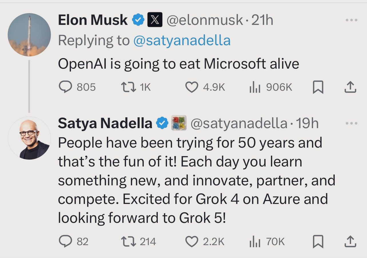 Out of context S. Nadella eating Elon Musk 🙌 live!