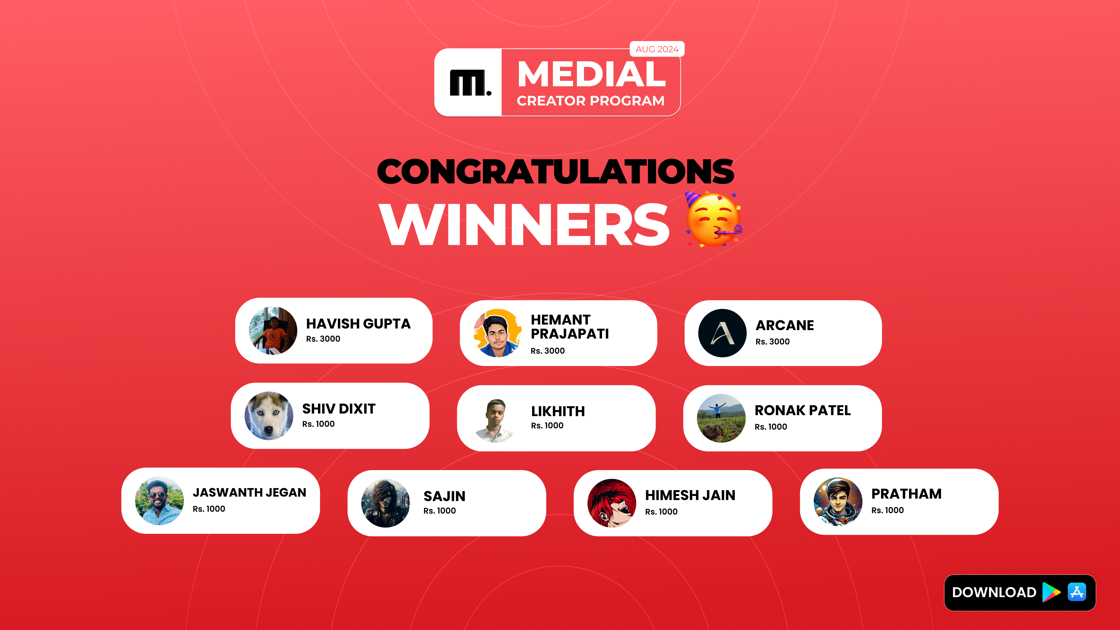 Announcement! Here are the winners of Medialโs Creator Program for August 2024. The list of winners is conveyed in the image below. Thanks you for blessing Medial with informative and helpful content. Weโre glad to have all of you here. Once