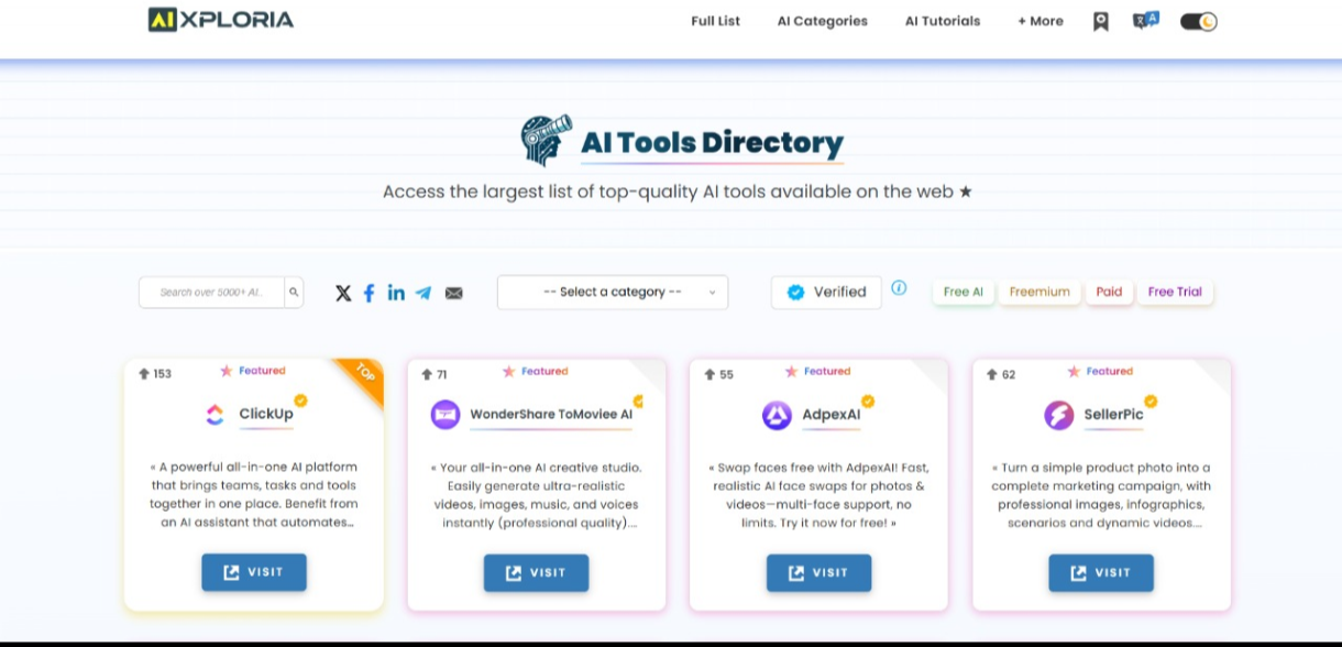 Finding this Al tool website is like unlocking a cheat code for life every Al you can imagine, for every task, all in one place. Writing? Design? Coding? Marketing? It's all here. I can't believe I didn't find this sooner. Check it out: aixploria.com