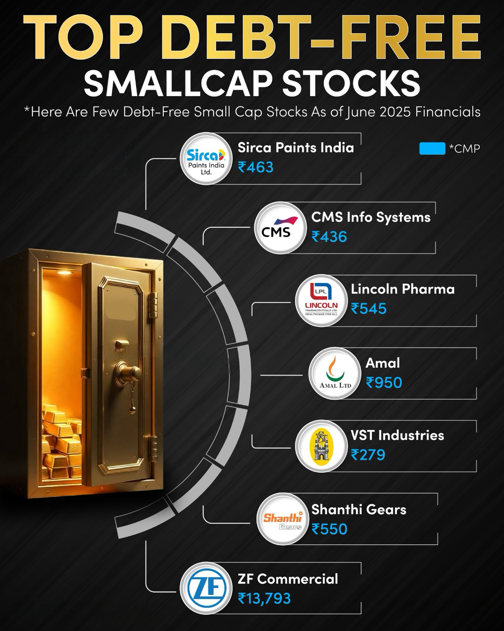 Top Debt-Free Smallcap Stocks โ June 2025 Looking for smallcap stocks with zero debt? Here are some promising picks based on June 2025 financials! ๐น Sirca Paints India โ โน463 ๐น CMS Info Systems โ โน436 ๐น Lincoln Pharma โ โน545 ๐น Amal Ltd โ โน950 ๐น VST Industries โ โน279 ๐น Shanthi Gears โ โน550 ๐น ZF Commercial โ โน13,793 โ Debt-free companies often have stronger financial health & lower risk! ๐ Disclaimer: This is for educational purposes only, not financial advice. Please research before investing.