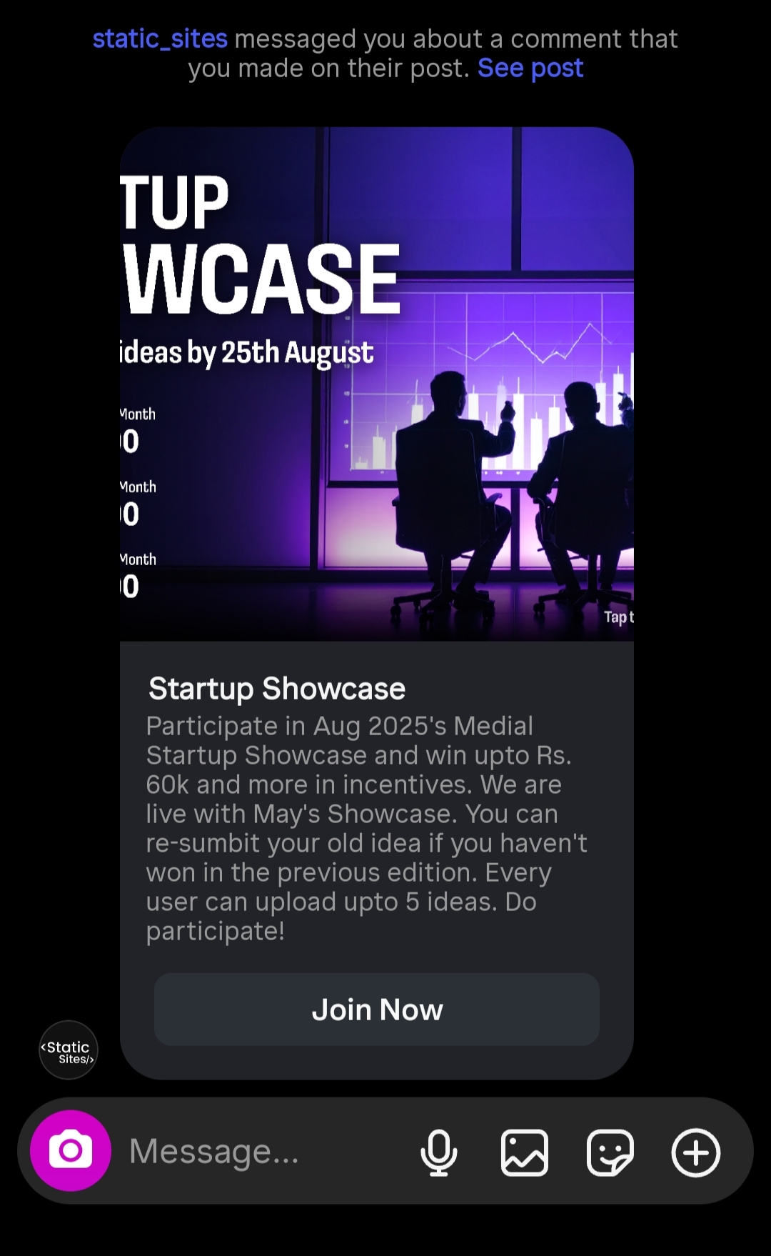 what if medial could auto dm prev start-ups like this ?(ps: I was testing my ig dm automation app )