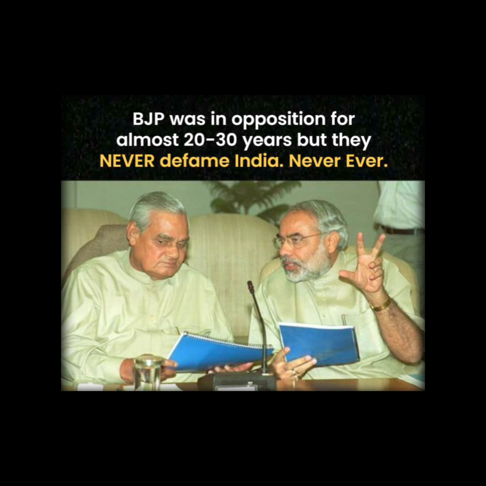 BJP was in opposition for almost 20-30 years but they NEVER defame india. Never Ever.