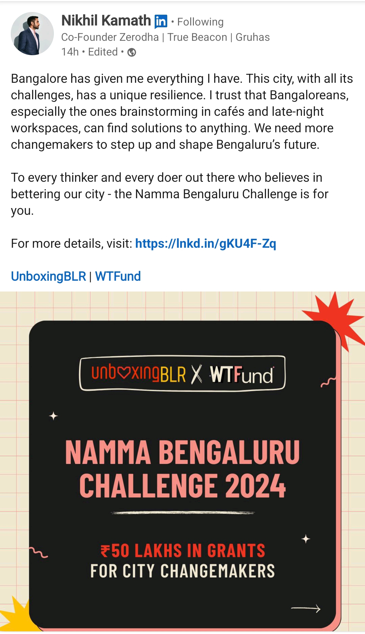 Calling all innovators and changemakers The Namma Bengaluru Challenge 2024 is here with a 50 lakh grant to support impactful solutions for the city. If ur having ideas to make Bangalore better, this is your chance to turn them into reality #Unboxing