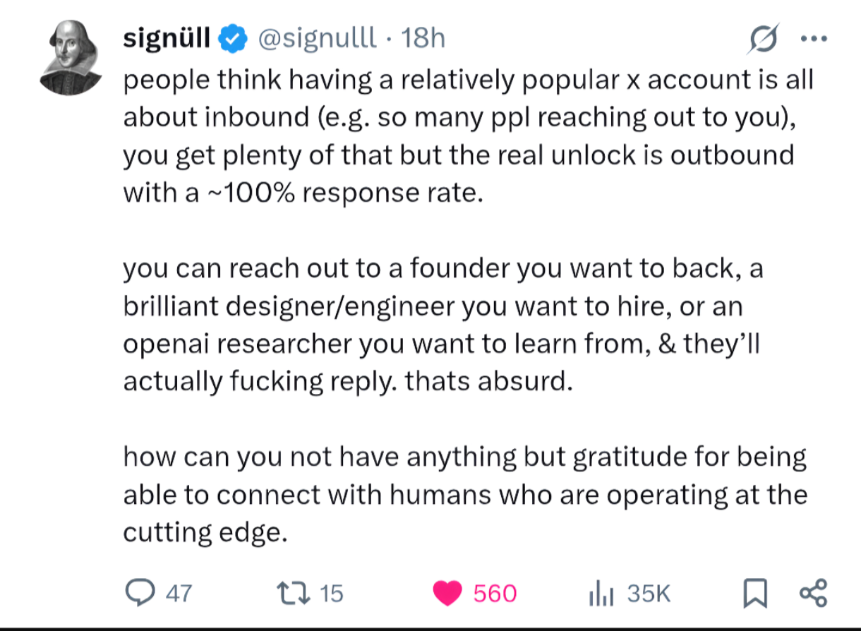 ๐ ๐ผ๐๐ ๐ณ๐ผ๐๐ป๐ฑ๐ฒ๐ฟ๐ ๐๐ป๐ฑ๐ฒ๐ฟ๐ฒ๐๐๐ถ๐บ๐ฎ๐๐ฒ ๐ต๐ผ๐ ๐ฝ๐ผ๐๐ฒ๐ฟ๐ณ๐๐น ๐ถ๐ ๐ถ๐ ๐๐ผ ๐ฏ๐๐ถ๐น๐ฑ ๐ฎ๐ป ๐ฎ๐๐ฑ๐ถ๐ฒ๐ป๐ฐ๐ฒ. You can create a multi-million dollar company, but if you donโt have a personal brand or following, your reach and opportunities stay limited. ๐๐ก๐ข๐ง๐ค ๐๐๐จ๐ฎ๐ญ ๐ข๐ญ: deals, connections, investorsโpeople respond faster when they already know and trust you. ๐ง๐ต๐ฒ ๐ฒ๐ฎ๐๐ถ๐ฒ๐๐ ๐๐ฎ๐ ๐๐ผ ๐๐๐ฎ๐ฟ๐? Just share your journey online. Post your thoughts, ideas, even small lessons youโre learning. People connect with honesty more than perfection. Over time, youโll realizeโyour audience becomes your biggest leverage. Builders, in todayโs world, owning attention online is as important as owning equity.