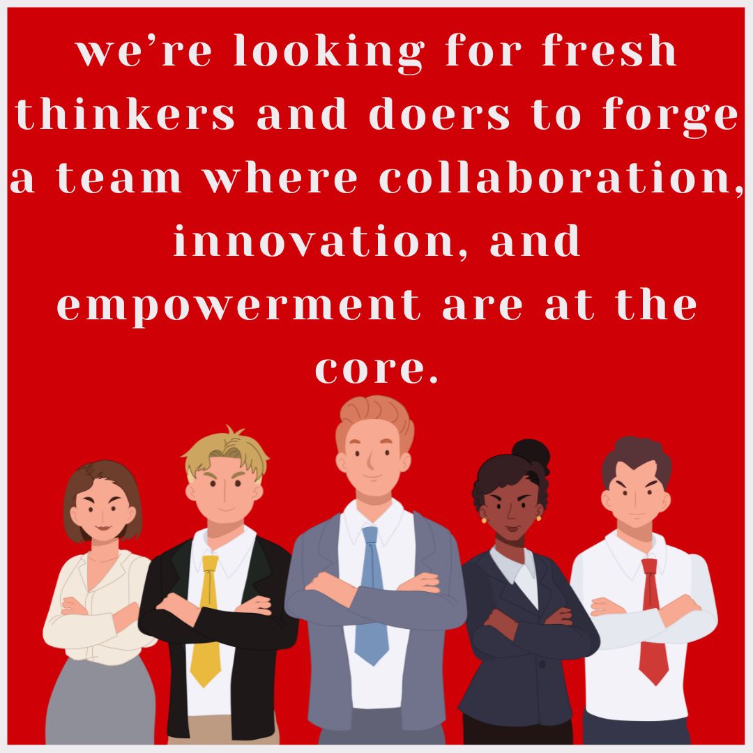 looking for fresh thinkers and doers to forge a team where collaboration, innovation, and empowerment are at the core. Here, we don’t just work together; we elevate each other’s potential to make a real difference. Join us as we cultivate groundbreak