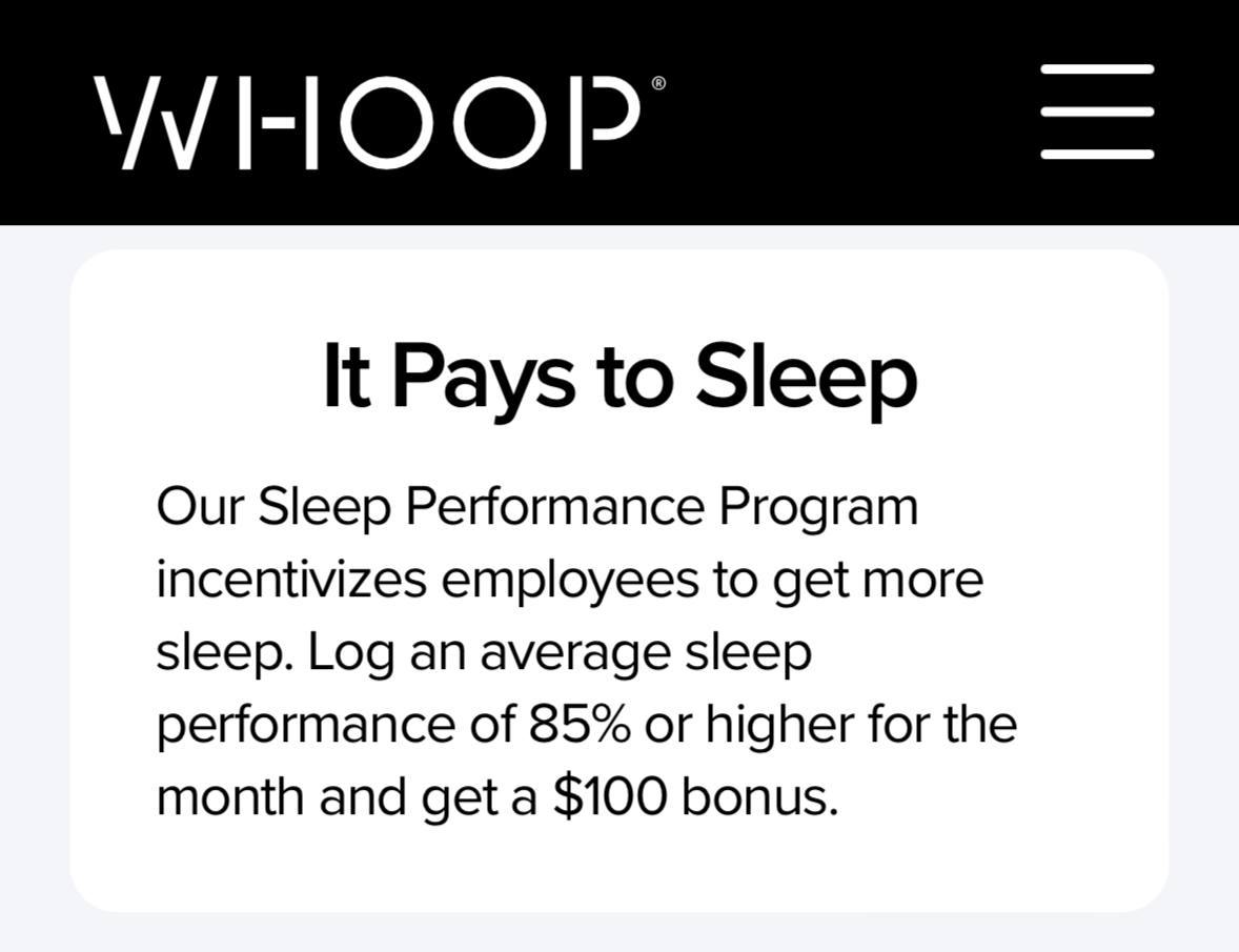 ๐คฏ Dream job โ at WHOOP, employees get a $100 bonus for a good nightโs sleep. ๐ด๐ธ ๐คฃ The company specializes in sleep and health tracking gadgets, providing them to employees for free. If they achieve a sleep score higher than 85%, they receive a n