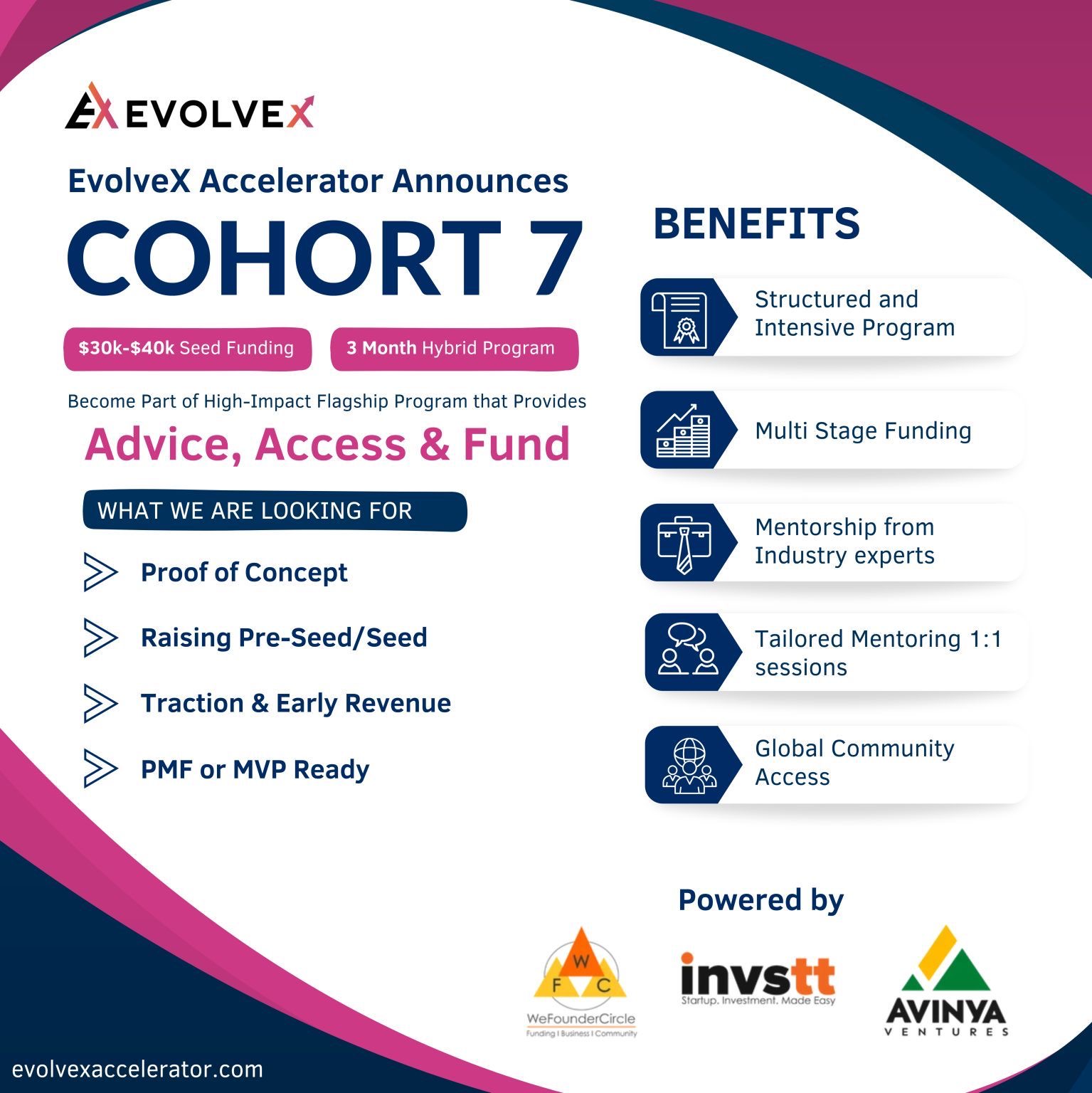 🚀 EvolveX Accelerator Cohort 7 is Now Open! Each cohort is a reminder of why we do this — working closely with purpose driven founders, sharing hard-earned lessons, and unlocking real growth. If you're building something early but ambitious, this
