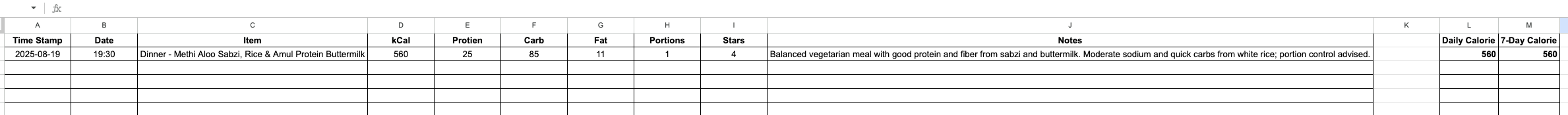Another day, another automation ⚡ I wanted to simplify something personal tracking my daily calories. So I built a workflow in n8n: ✅ A webhook captures my meal input ✅ CustomGPT processes & enriches it into nutrition details (calories, protein, carbs, fats, safety score, notes) ✅ Data gets auto-logged into Google Sheets with charts & progress tracking The twist? Instead of using costly Vision APIs, I connected a CustomGPT that breaks down meals in detail with portion sizes, macros, and even improvement suggestions. Now every dinner plate gets turned into structured insights and stored against my daily 2000 kcal target 🍲📊 Automation isn’t just about business processes. It’s about making everyday life easier, smarter, and healthier.