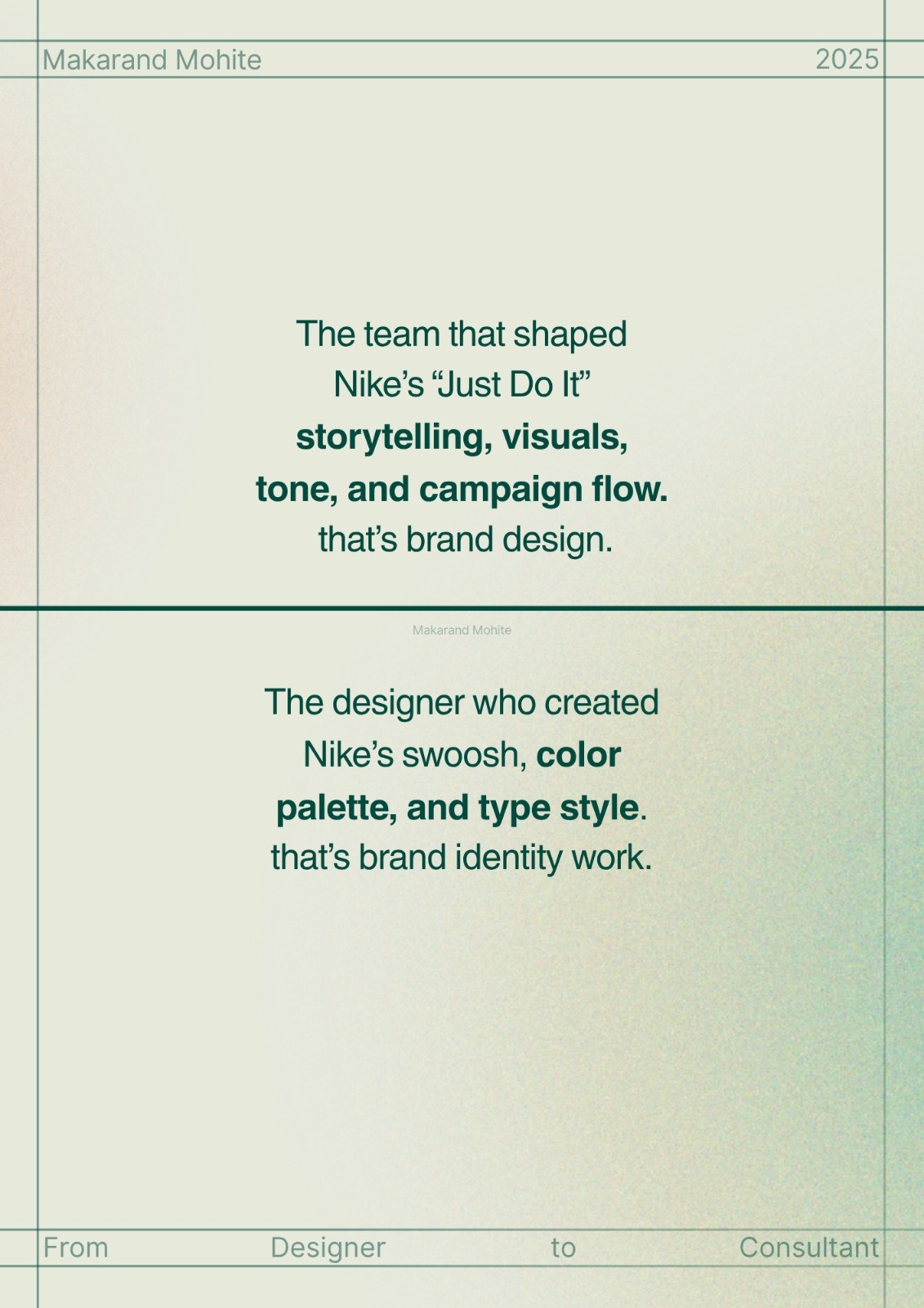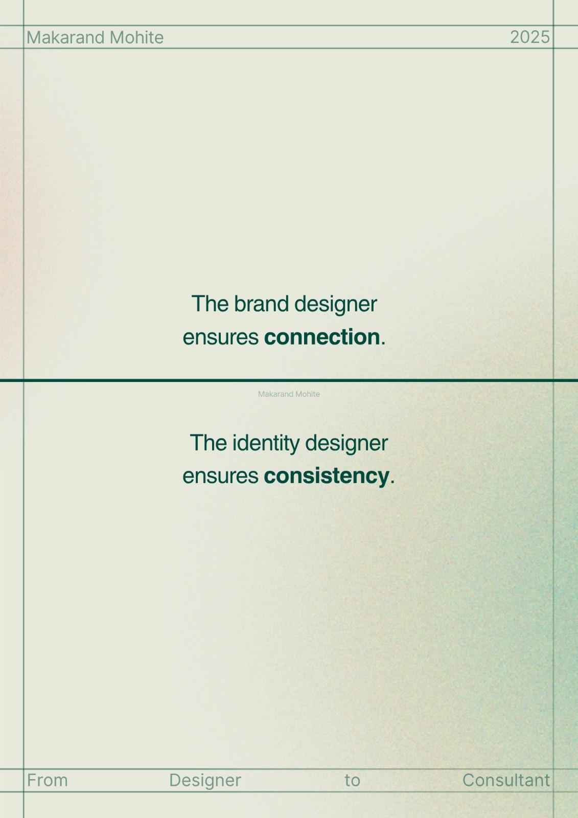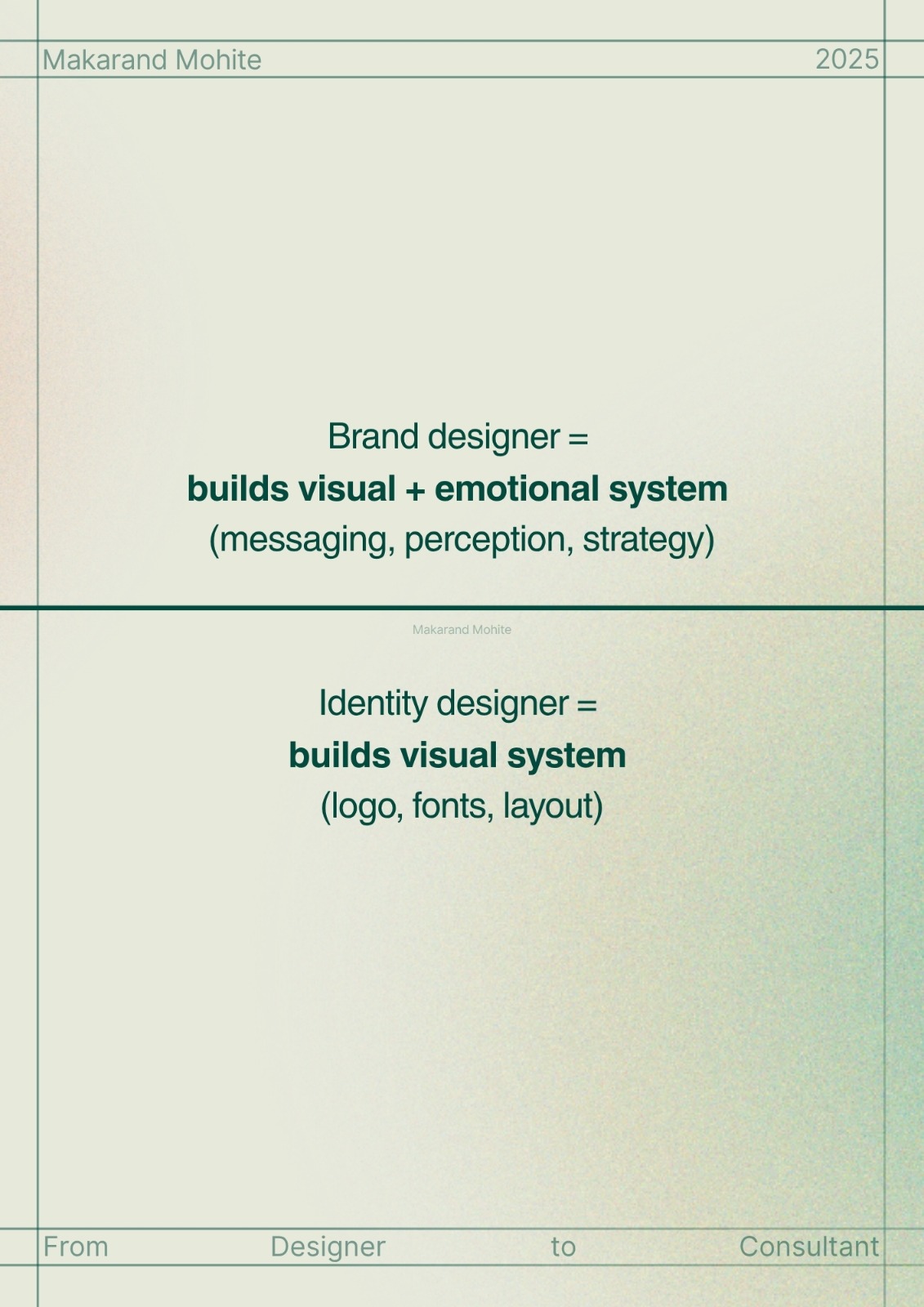 Last week, I came across a few portfolios where both terms were used interchangeably. But in reality, they solve very different problems. A Brand Designer focuses on how a brand communicates - visuals, layouts, campaigns, social media presence, and