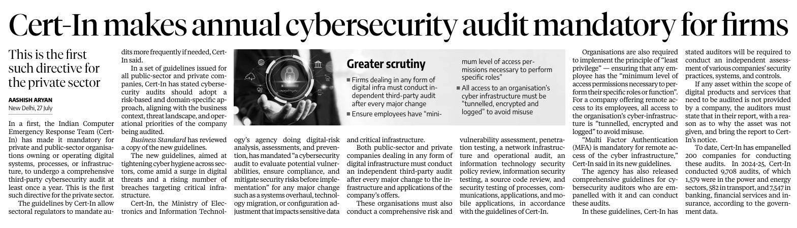 One of the biggest news coming from government to private firms cybersecurity audit is now mandatory here's is the news attached below