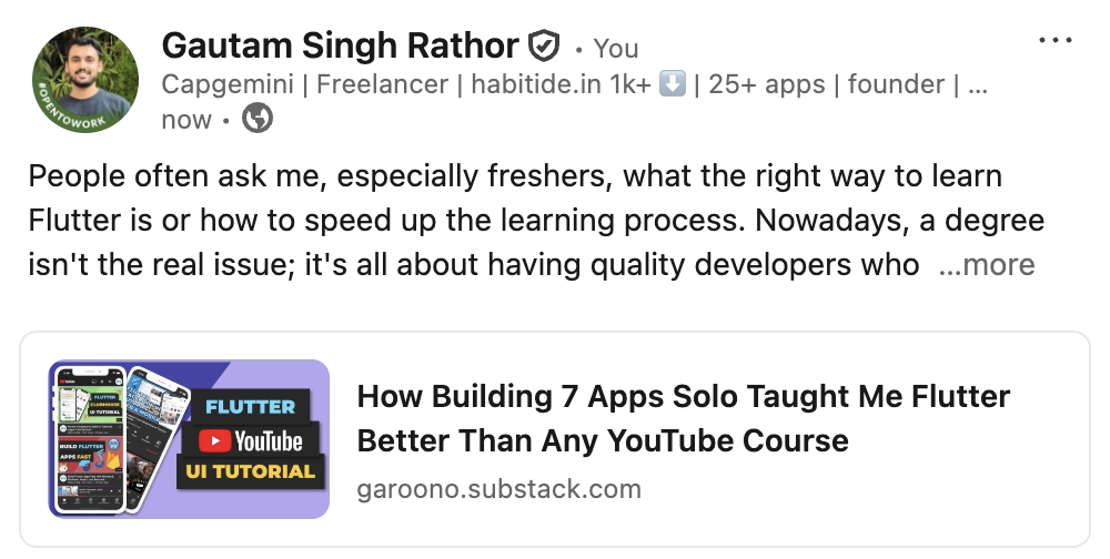 People often ask me, especially freshers, what the right way to learn Flutter is or how to speed up the learning process. Nowadays, a degree isn't the real issue; it's all about having quality developers who know what to do when something is asked of
