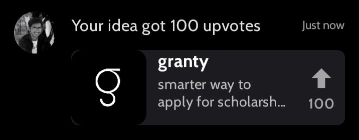 Granty just hit 100 upvotes on Medial! 🚀 A huge thank you to everyone who's supported this idea to simplify scholarship applications for students. Let’s keep this momentum going! 🙌 if you haven't checked it : https://medial.app/idea/granty-54a197c