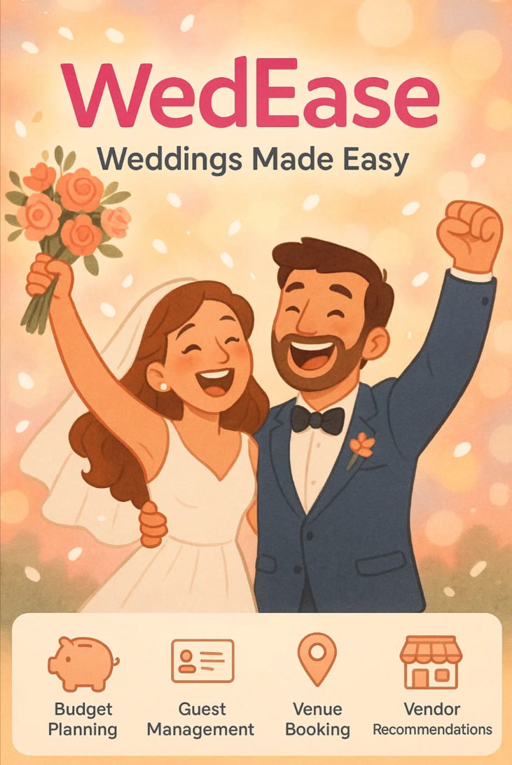 Title: WedEase Tagline:โWeddings made easyโ Description: WedEase is a one-stop digital wedding planning platform designed to simplify the most important event in Indian familiesโmarriage. In today's fast-paced world, families often struggle to find