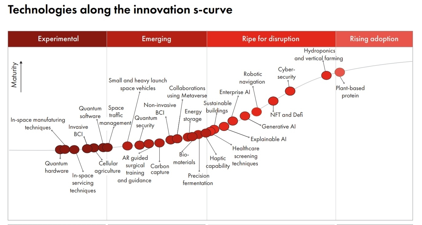 Technologies Along the Innovation S-curve ๐งช Experimental - BCI evolving from brain signal analysis to brain activity modulation for medical/commercial uses. - Quantum advancements decreasing error rates. - Space tech reducing launch costs and incr