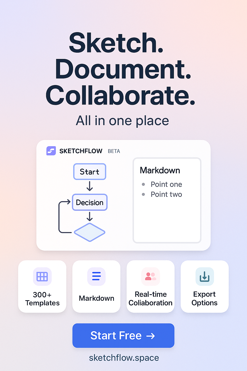 🧠 Sketch. Document. Collaborate — All in one place. Meet SketchFlow – your new visual thinking companion. 🎯 Tired of switching between whiteboards, docs, and design tools just to explain one idea? SketchFlow brings it all together. From wireframe