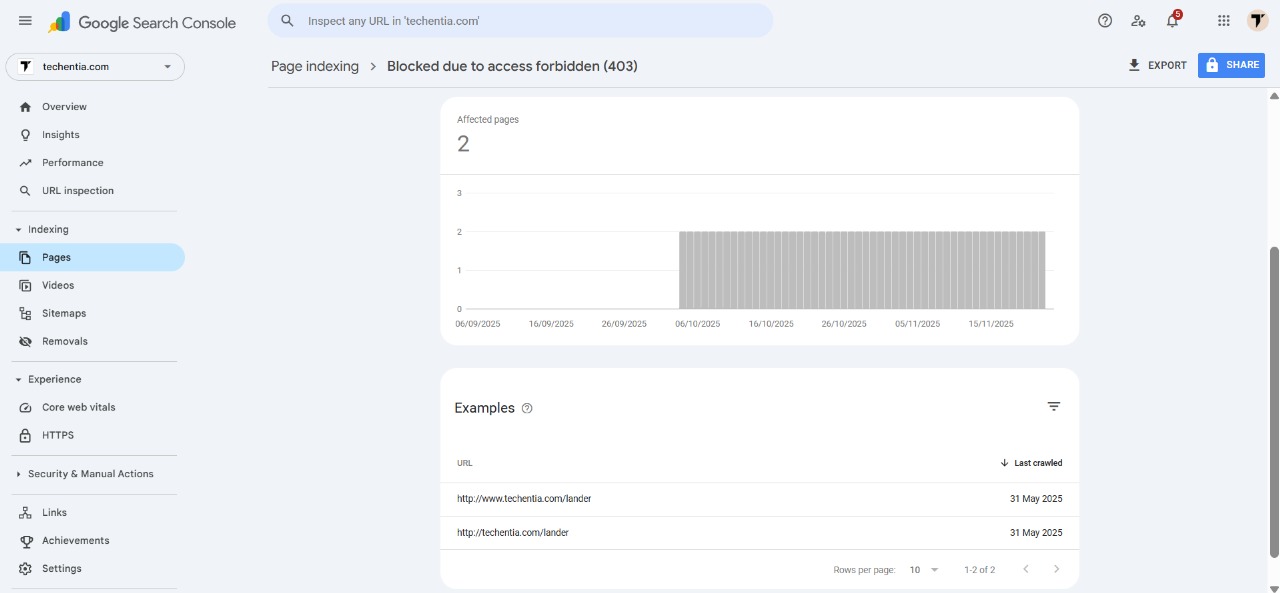 Day 27/28 of rebuilding my online presence from the ground up Google keeps trying to crawl an old /lander URL that doesnโt even exist in my new site Does anyone have an idea why is that so? Well for now, cleaned up the 403s & letting Google re-cra