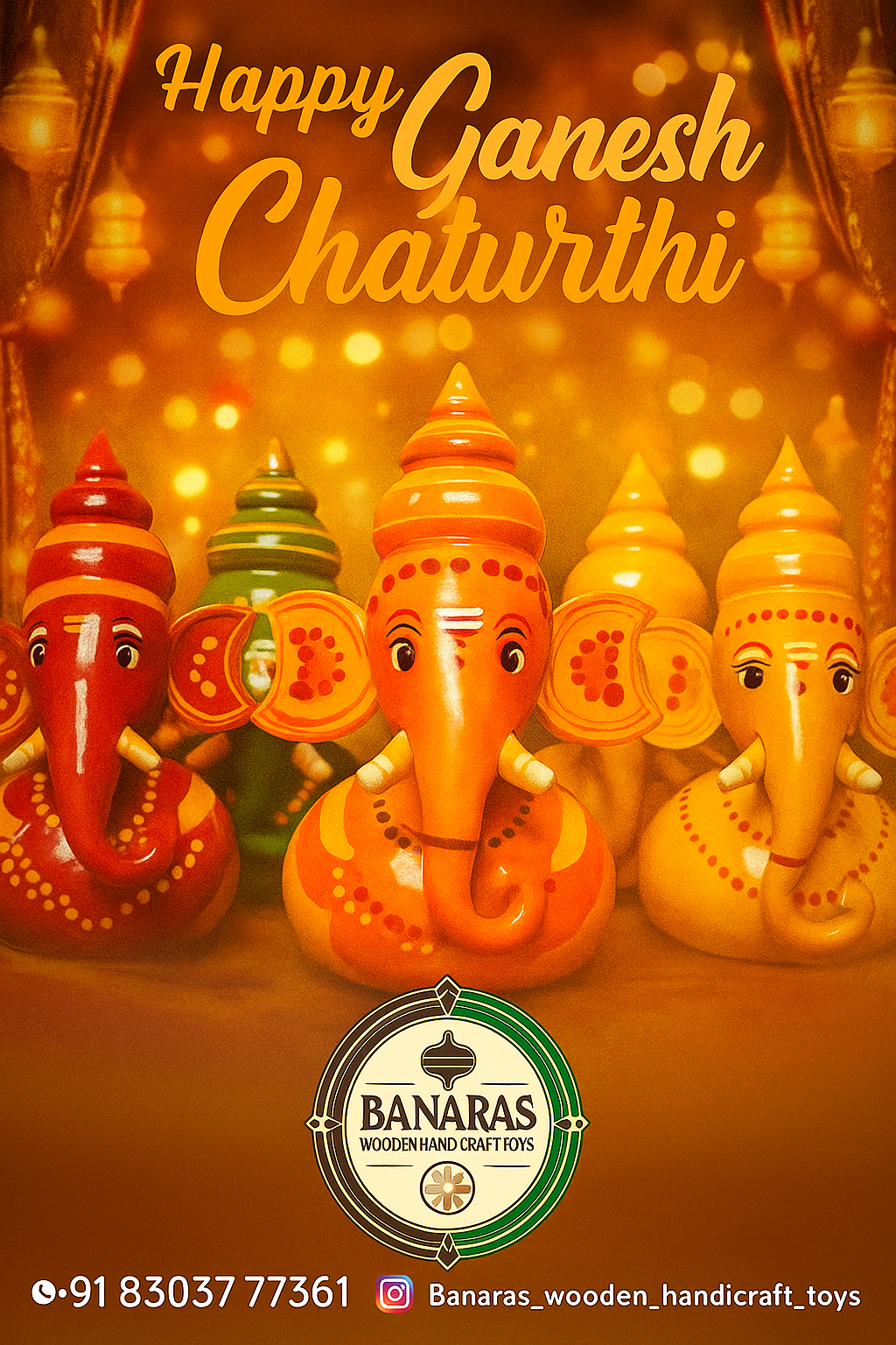 ✨ Heartfelt Greetings on Ganesh Chaturthi ✨ On this auspicious occasion, let us welcome Lord Ganesha with love, positivity, and creativity. At Banaras Wooden Handicraft Toys, we don’t just create toys — we craft art that keeps tradition, culture, and devotion alive. Just as Lord Ganesha inspires us with wisdom and new beginnings, our handcrafted toys symbolize sustainability, tradition, and craftsmanship. 🌿 This festive season, embrace creations that are eco-friendly, traditional, and timeless. Wishing you all a blessed Ganesh Chaturthi! 🙏✨ #GaneshChaturthi #Handicraft #WoodenToys #SustainableArt #Banaras #CultureAndTradition.