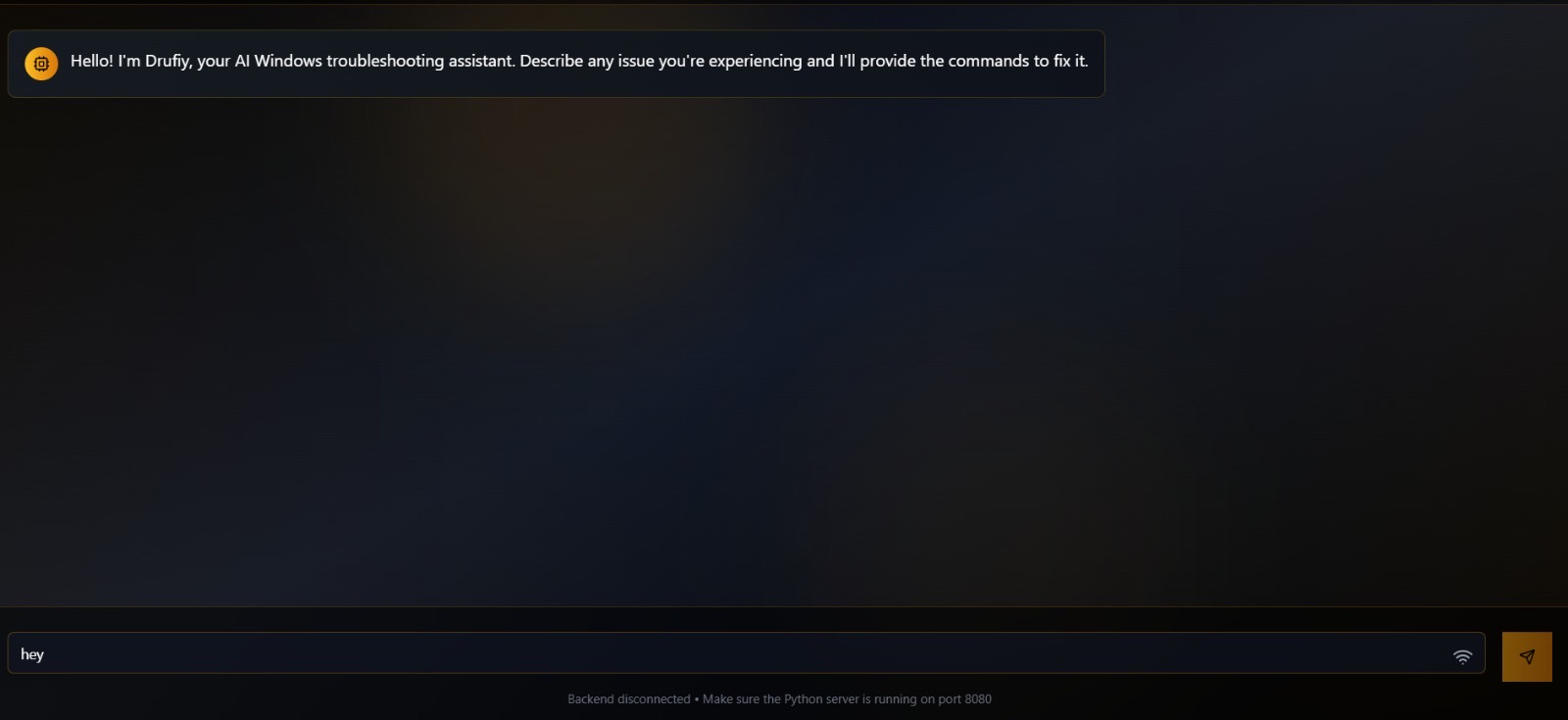 We are live. Drufiy’s MVP is finally out in the world. Is it perfect? Far from it. Right now it’s text based, a little rough around the edges, and nowhere near the “Jarvis for your computer” we envision. But that’s the point of an MVP — to start, to test, to learn, to improve. Today Drufiy can diagnose and troubleshoot issues through text. Tomorrow it will fully detect problems on its own and proactively solve them, making tech frustration a thing of the past. You can download it now at drufiy.com but you’ll need a user ID to log in. DM me if you want access, whether for early beta testing or exploring partnerships.