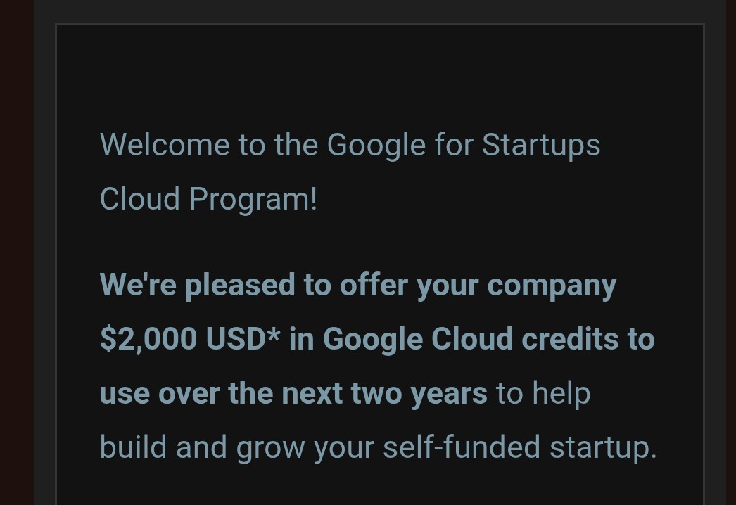 $2000 USD 🥳 Our startup Zwishh got approved for Google cloud for the startup program and received $2,000 USD cloud credits