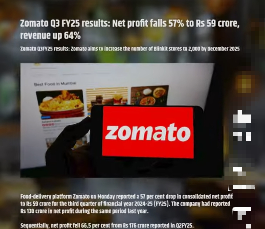 Zomato Finances of this year::: Revenue: 5405 cr Expenses: 5533 cr Loss:128 cr Non operating income (invested in FD, IPO and from other places): 252 cr Income- Loss=124 cr After tax: 59 cr Means, Zomato is earning from interest and FD's than actual