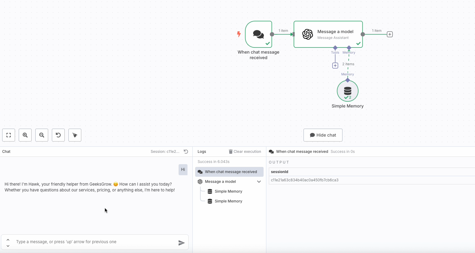 Another day, another automation. Today I built Hawk โ a chatbot trained on our FAQ knowledge base at GeeksGrow for instant, human-like support. ๐ง What it does: โ Answers questions about our services & pricing โ Pulls responses directly from our cu