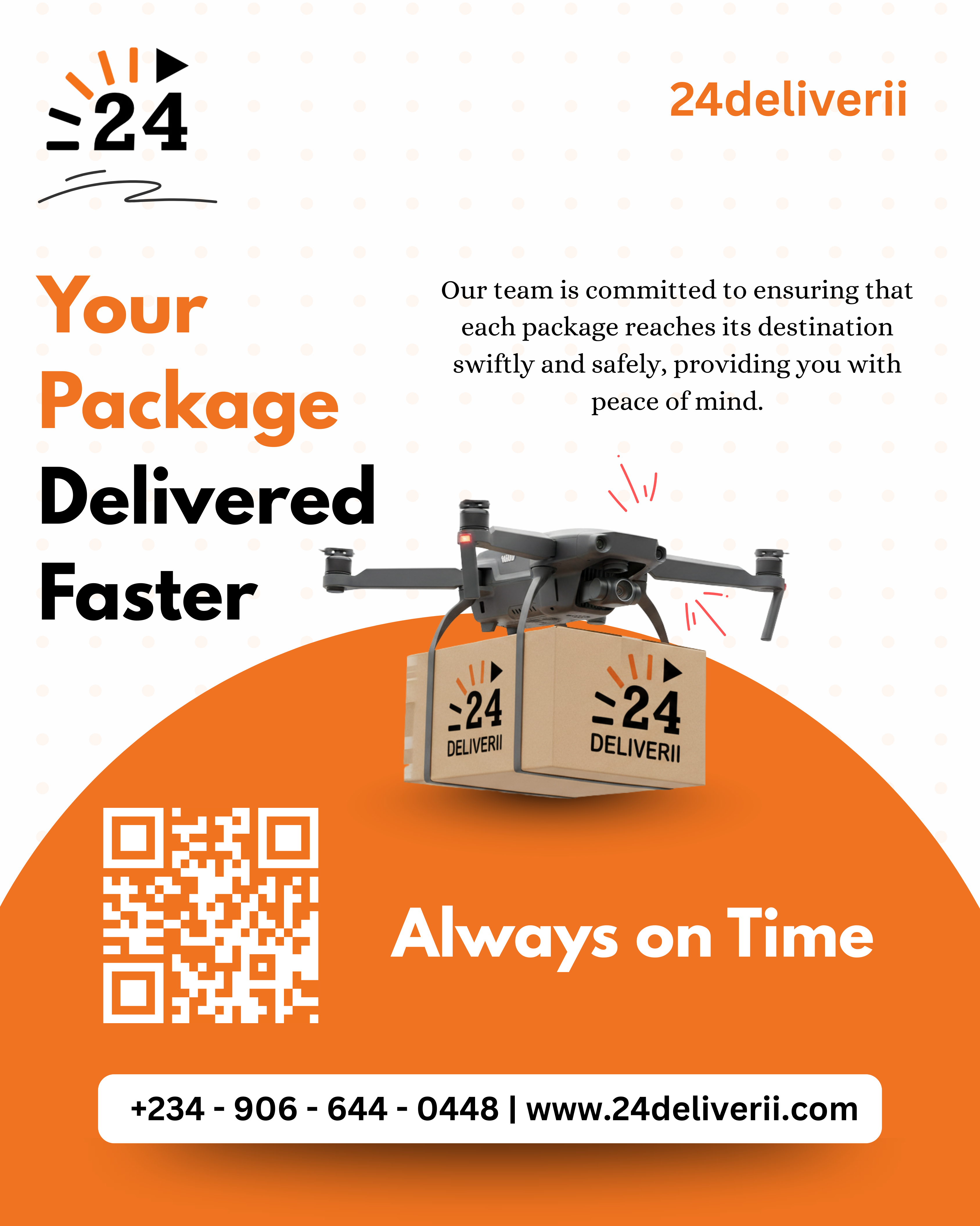 At 24deliverii, our team is committed to ensuring that each package reaches its destination swiftly and safely, giving you peace of mind with every order. Your trust drives us. Your deliveries inspire us. And your satisfaction is always on time, every time. Track or book now: www.24deliverii.com | wa.me/+2349066440448