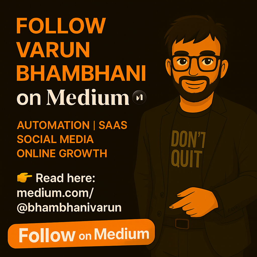 🚀 I’ve started writing on Medium! Over the years, I’ve been deep into: ⚡ Building automations with N8N & Make.com 💬 Running customer support remotely for 15+ years 📈 Growing brands through social media & content systems Now, I’m turning all those lessons into practical, no-fluff articles on Medium. My focus → Automation, SaaS, Social Media Growth & Online Business. 👉 Check out my profile here: https://medium.com/@bhambhanivarun If you’re a founder, creator, or curious learner, you’ll find strategies you can apply the same day. Would love your feedback, and if you like what you read then hit that follow button ❤️