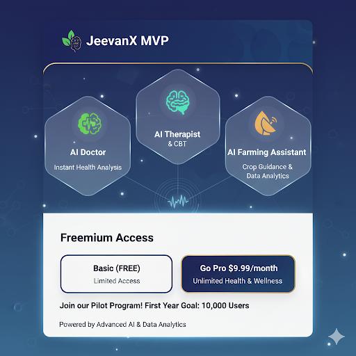 🚀 Hey everyone, I’m exploring an idea called JeevanX — the world’s first AI-powered 24/7 wellness and farming companion. 👉 The vision: a single platform where advanced AI avatars act as your virtual doctor, therapist, fitness coach, skin-care advi