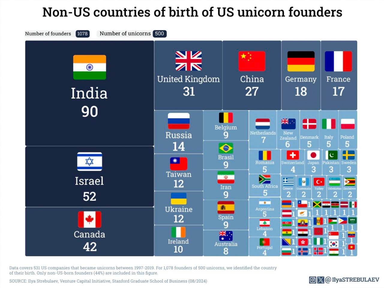 Brain Drain is hitting us hard and others taking advantage of it . Out of 500 unicorns in the US, 90 were founded by entrepreneurs born in India! ๐ฎ๐ณโก๏ธ๐บ๐ธ Thatโs 18% of the US unicorn ecosystem powered by Indian talent. While it's a proud moment, i
