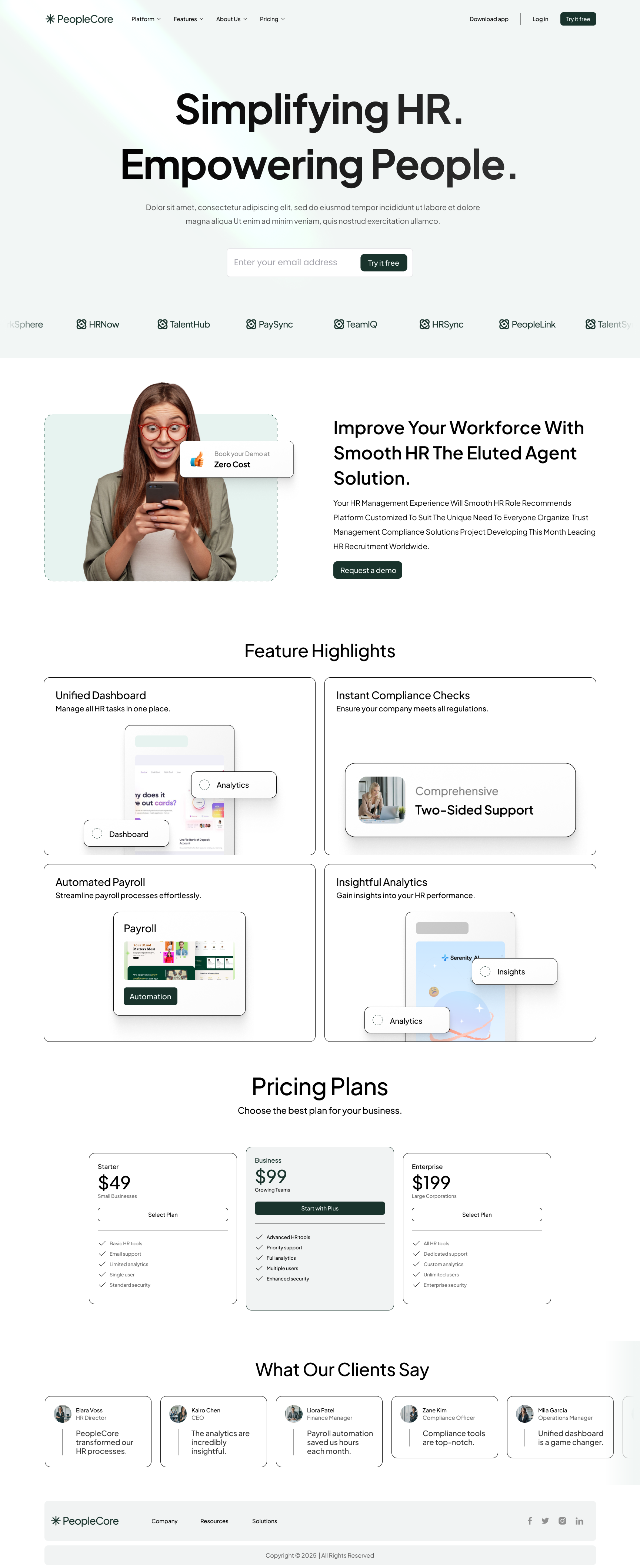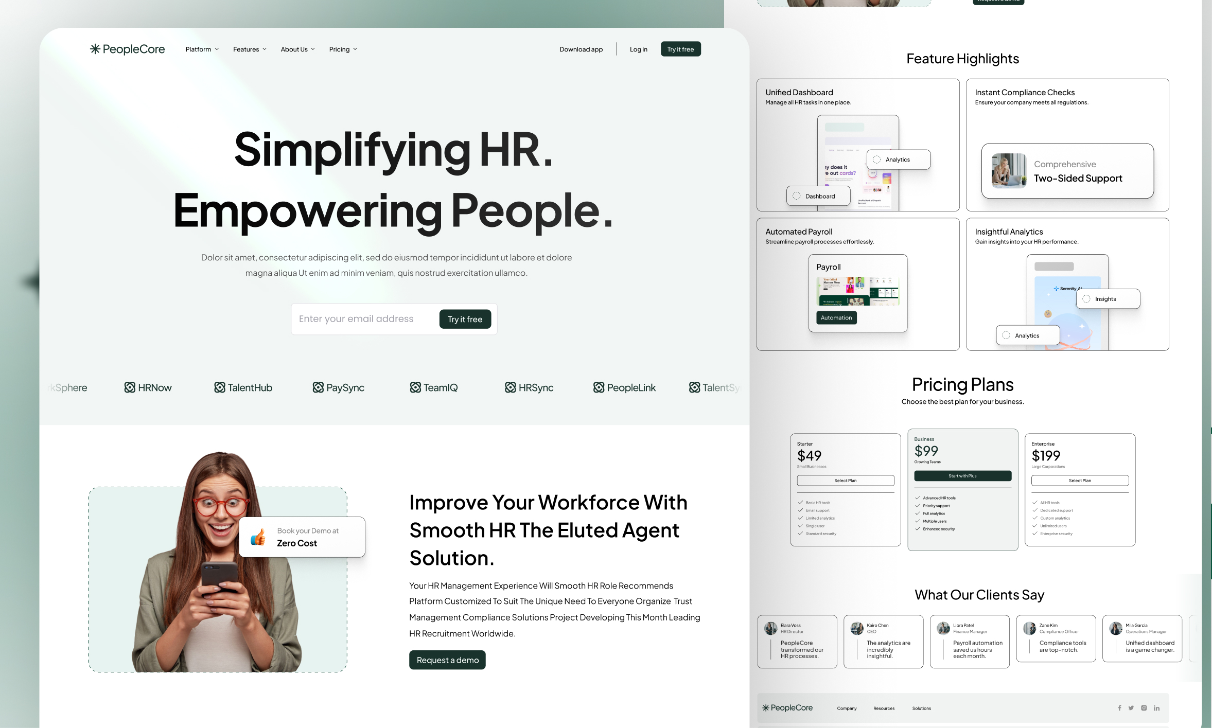 My latest project ✔️ PeopleCore HR site – feature highlights, pricing plans & client stories in one platform