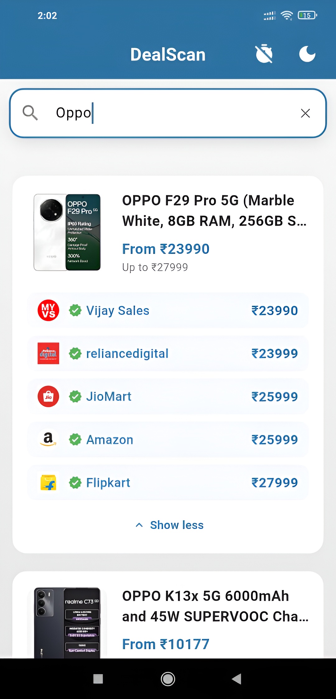 Created an App DealScan to compare Phone prices between Flipkart, Amazon, JioMart, Croma, etc. Looking for feedback & suggestions. Android App link: https://play.google.com/store/apps/details?id=co.dealscan.app