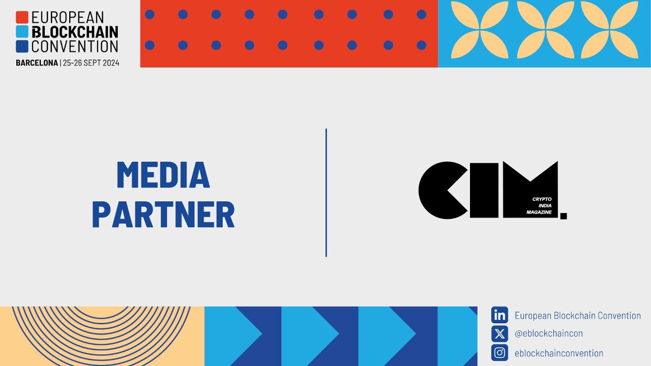Crypto India Magazine is now the Official Media Partner of the European Blockchain Convention🤝 Be part of Europe's top Blockchain and Digital Assets event! 🎙️6,000 attendees and 300 speakers! 📅 Date: 25-26 September 2024 📍 City: Barcelona, Spai