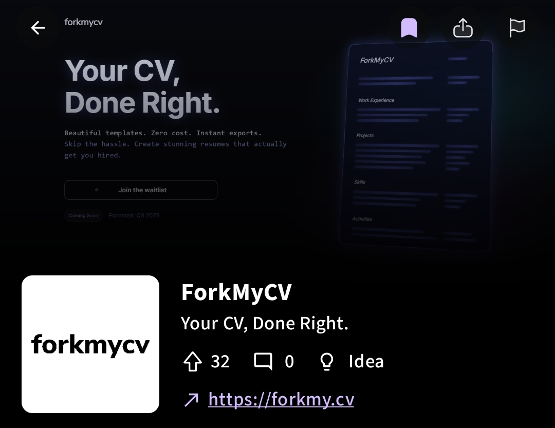 Just spotted ForkMyCV in Medialās Showcase panel. Theyāre building 100% free resume tool. I personally faced this struggle spending hours hunting for a decent resume template only to hit a āPay to downloadā wall. š So seeing something thatās actua
