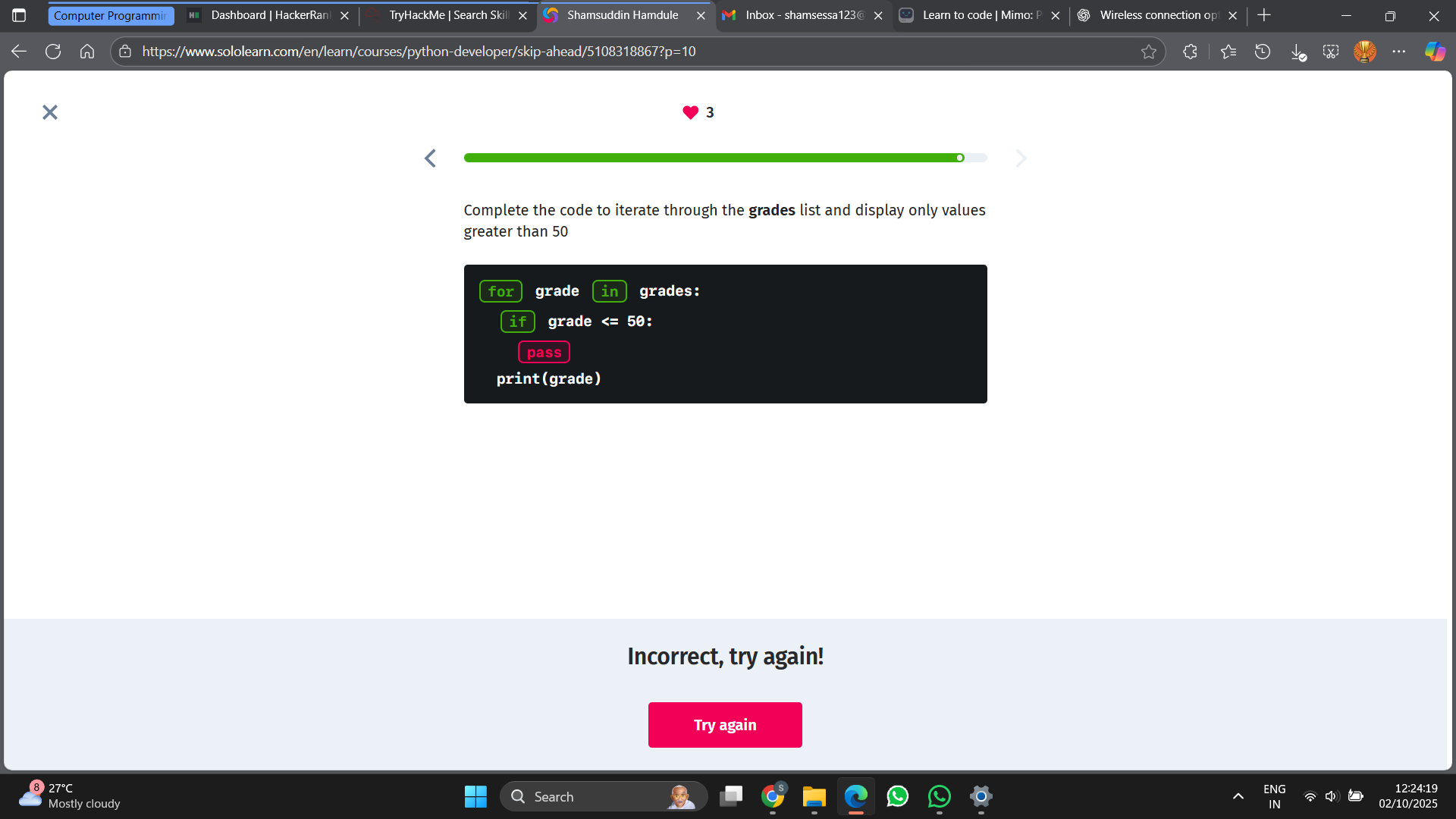 this a question from solo learn can any one solve this