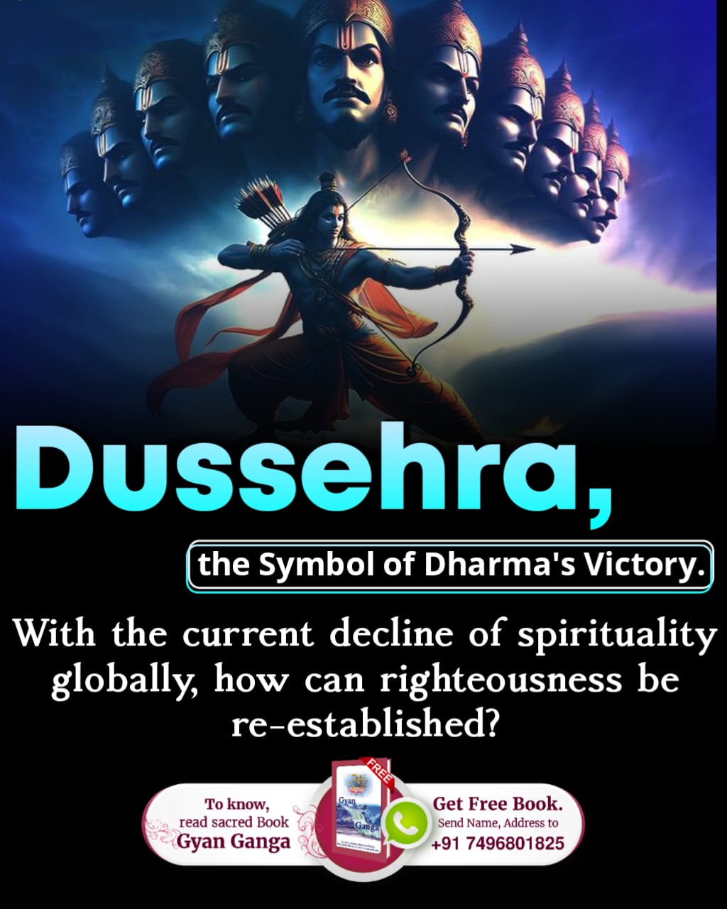 #धर्मविजय_का_प्रतीक_दशहरा भक्ति बिना क्या होत है, ये भरम रहा संसार। रति कंचन पाया नहीं, रावण चलती बार।। परमात्मा कबीर साहेब जी बताते हैं कि रावण का बहुत बड़ा साम्राज्य और विशाल परिवार था। उनके एक लाख बेटे और सवा लाख पोते थे, लेकिन आज उनके परिवार में एक भी परिवार का सदस्य जीवित नहीं है, सभी मर चुके हैं। Aadi Ram Kabir THE SYMBOL OF RIGHTEOUS VICTORY: DUSSEHRA Dussehra is celebrated as the victory of righteousness, marking the day Shri Ram defeated Ravan. Likewise, Sant Rampal Ji Maharaj is presently establishing dharma by conquering the monster of evil in society through enlightened spiritual knowledge. 👁️⬇️👁️ receive free Initiation and spiritual books by Sant Rampal Ji Maharaj Ji, message us on WhatsApp: +917496801823 Download our Official App Sant Rampal Ji Maharaj GET IT ON Google