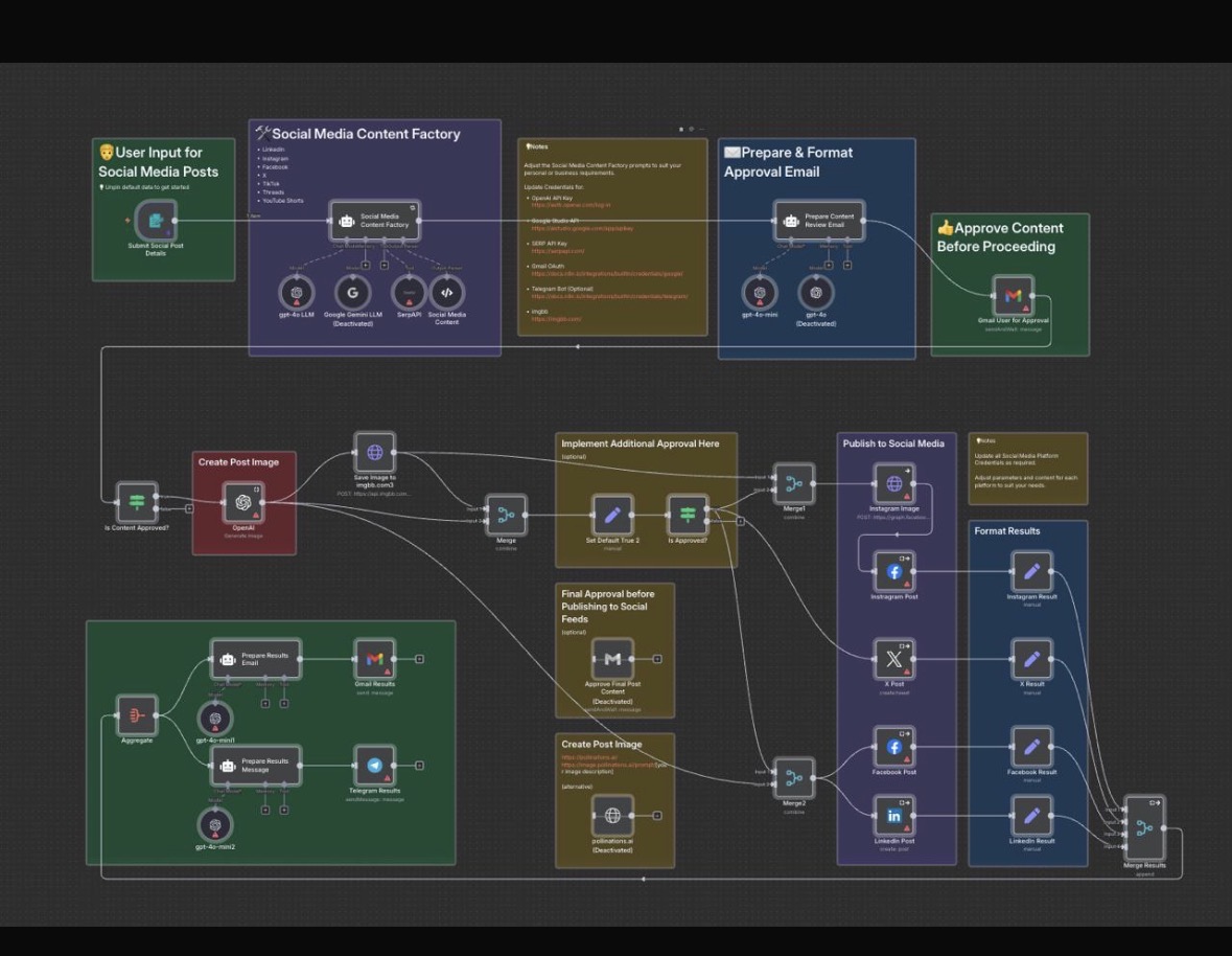 🔥 Replace your content team charging $5K/month with this AI-powered workflow — I usually sell it for $2K, but you can get it FREE today. ✅ Auto-generate & design posts for LinkedIn, IG, FB, X, TikTok, Shorts ✅ AI-created images ready to publish ✅ Email approval flow before going live ✅ One-click publishing to all platforms ✅ Results sent straight to your inbox/Telegram Let me know if you need it :) Stop burning $$ on agencies — let AI run your content engine 🚀 I also run a community on WhatsApp dm for link. Where I post daily hacks