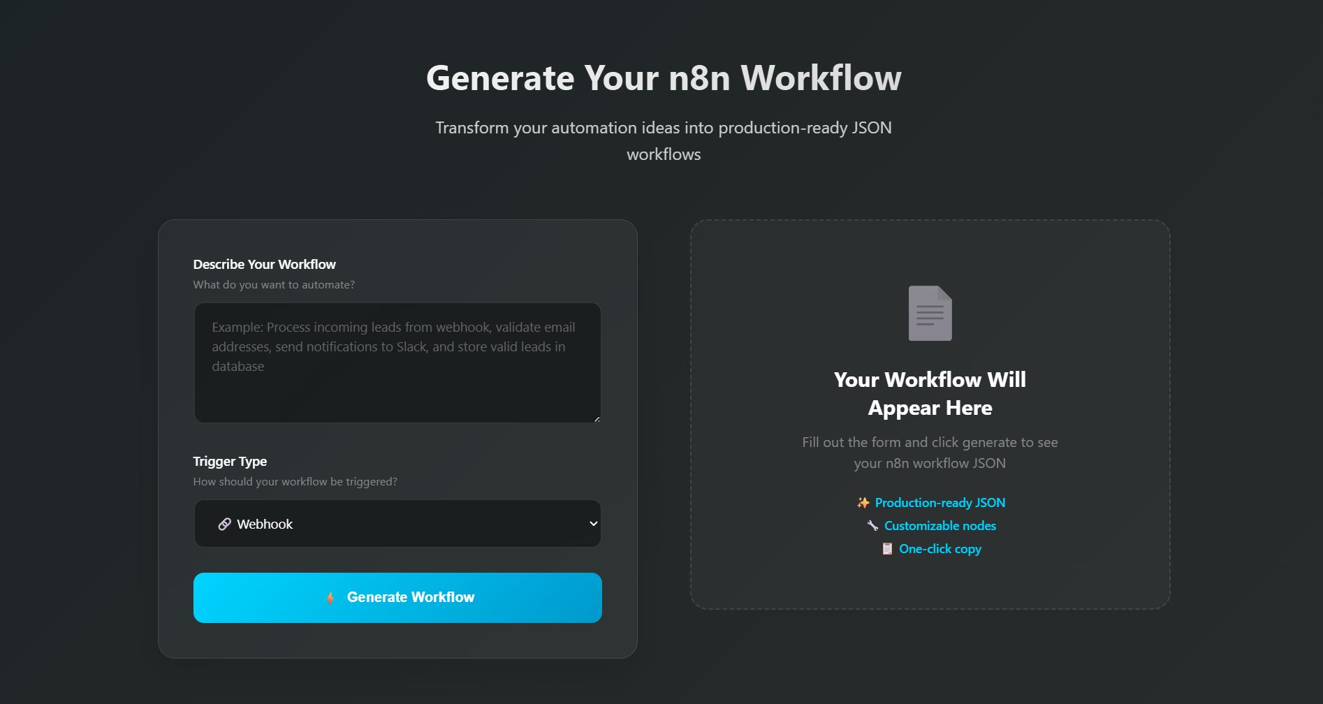 #10appsin10weeks — week 1 🚀 app: n8n-go what it does: give it a workflow prompt → get clean JSON code → paste into n8n → done. no learning curve, no headache. sooo… week’s almost over but I made it! 🙌 my first app for this challenge is live — a JSON code generator for n8n. lately, I’ve seen a lot of engineers trying to skill up in n8n, and I thought… why not make it easier (and fair) for everyone? no more spending hours trying to craft the “perfect” workflow. just tell it what you want, and it’ll generate an optimized one for you, powered by Gemini 2.5 and supported by a fallback local system so it never goes down. see you next week with something even crazier 👀