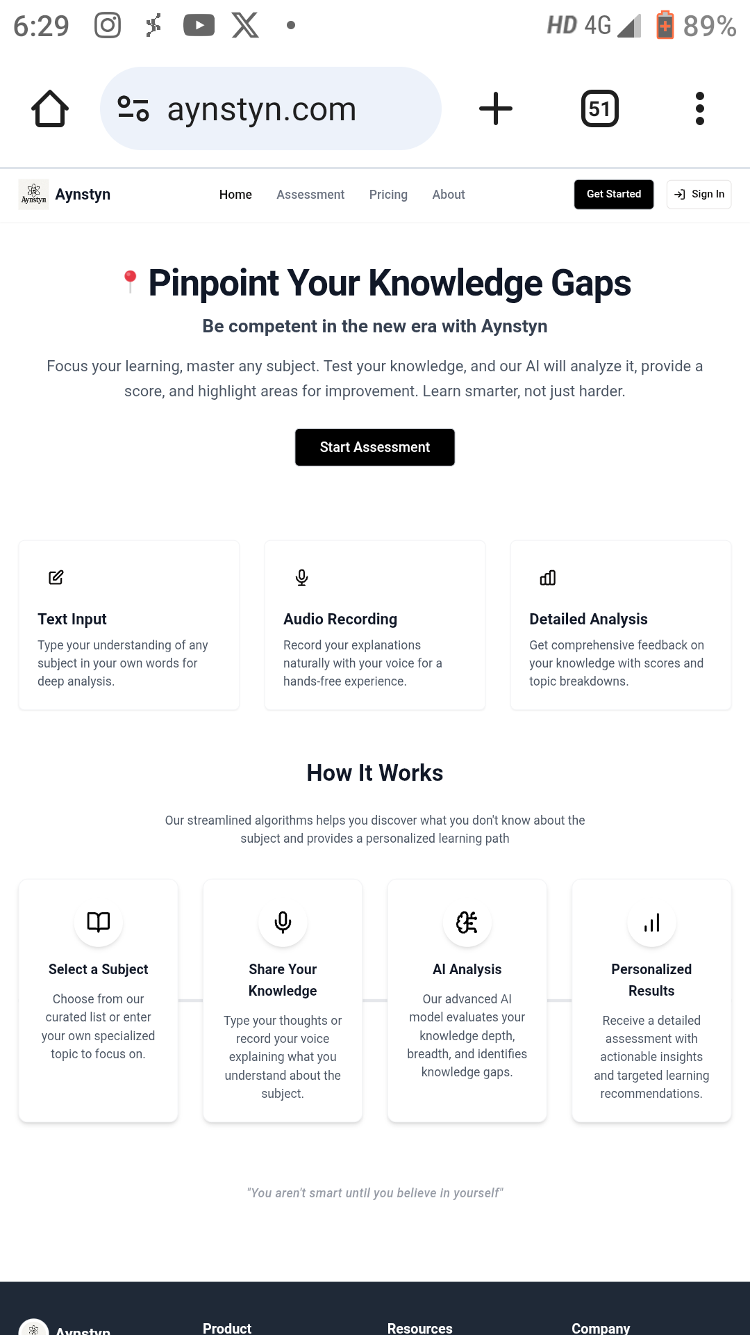 ๐ Aynstyn.com ๐ i think this Ai can help each and every individual to find their knowledge gap, where they need to explore more and having mastery , this is not a course but a self assessment tool. they are giving 5 credit free. ๐ Aynstyn.com ๏ฟฝ