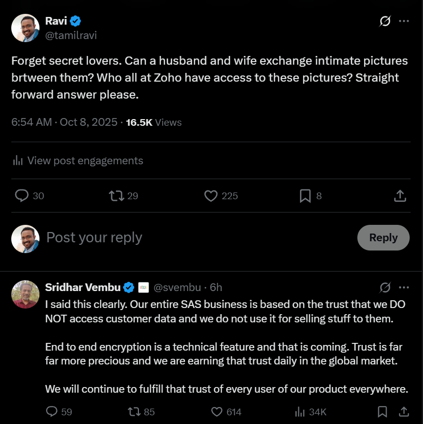 IMPORTANT - Arattai msgs are not end to end encrypted. ⚠️ Please chat cautiously.
