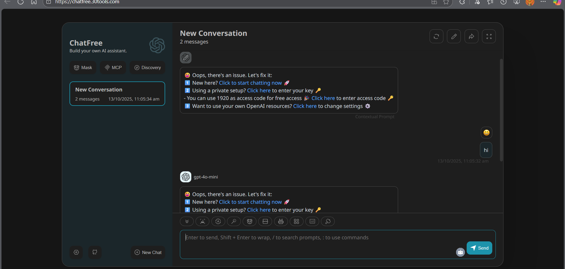 🚀 Introducing ChatFree — Your Own Private AI Chat Platform 💬 No limits. No sign-ups. No distractions. Just you and AI. ✨ What is ChatFree? ChatFree is a free, open, and lightning-fast AI chat experience — designed for people who want the power of ChatGPT-like intelligence without logging in, paying, or sharing data. 🧠 Top Features: ⚡ Instant Access — No registration, no API key, no credit card. Just open and start chatting. 🔐 Privacy First — Your chats stay on your device. Nothing is stored or tracked on any server. 🪄 Multi-Model Support — Talk with different AI models (like GPT, Claude, Gemini, and more) — all in one sleek interface. 🧭 Custom Personalities & Prompts — Create your own assistant, define its role, tone, and knowledge style. 🌙 Dark & Light Modes — Beautiful, minimal UI built for focus and comfort. 💾 Local Chat History — Keep your past conversations locally without compromising your privacy. 🔧 Developer Friendly — Add your own API key or connect custom endpoints to make it truly yours. 📱 Mobile & Desktop Friendly — Responsive and smooth experience across devices. 🧩 Open Ecosystem — Because it’s open-source at its core, it’s built to grow — customizable, hackable, and community-driven. 💡 Why You’ll Love It: 100% Free to use No ads, no clutter Privacy-focused Super clean and modern UI Runs directly in your browser Lightweight but powerful — like a minimal ChatGPT alternative you control 🔗 Try it now: https://chatfree.30tools.com ⚙️ Build your own version, experiment, or just use it daily — ChatFree gives you AI freedom without friction.