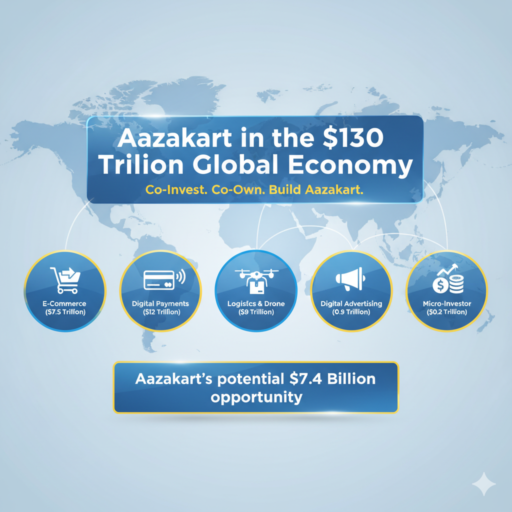 The Future Belongs to Builders The world economy has now crossed $130 Trillion. But the next trillion-dollar opportunities won’t come from big corporations — they’ll come from bold startups that connect people, innovation, and trust. At Aazakart,