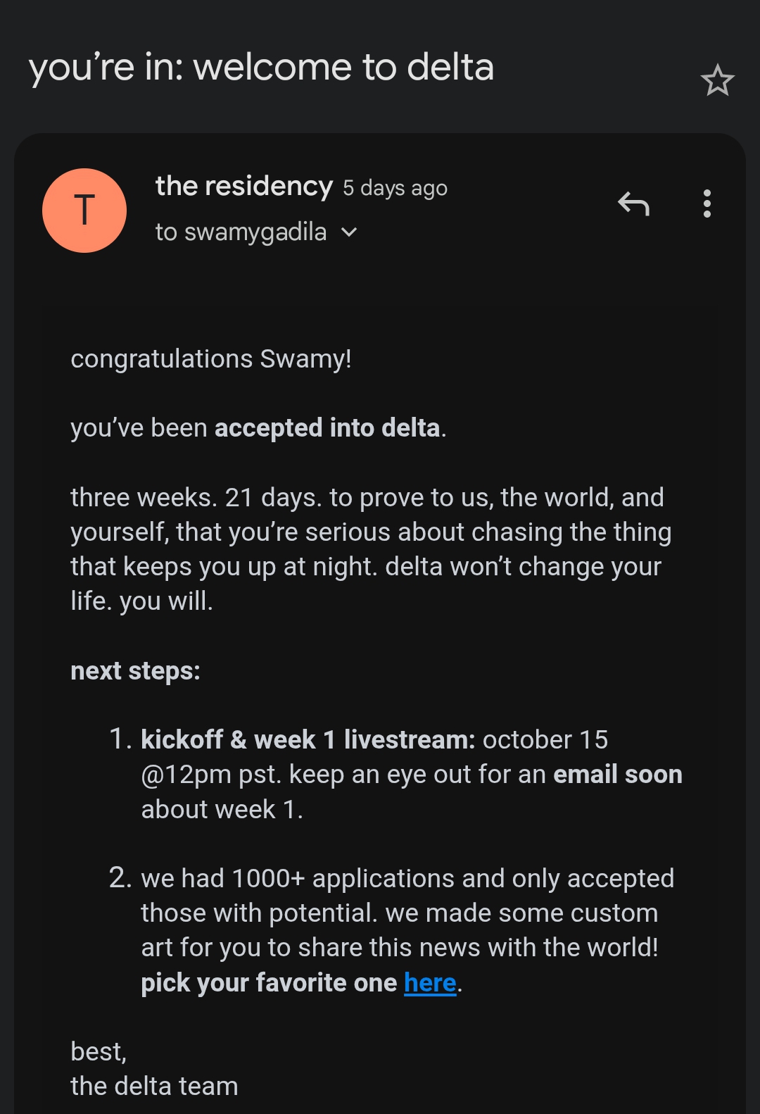 1000+ applied. Only a handful made it. I’m one of them — in the Delta Residency now. Officially in the Delta Residency 🚀 3 weeks. Pure execution. #DeltaResidency #FounderMode #FridayAI