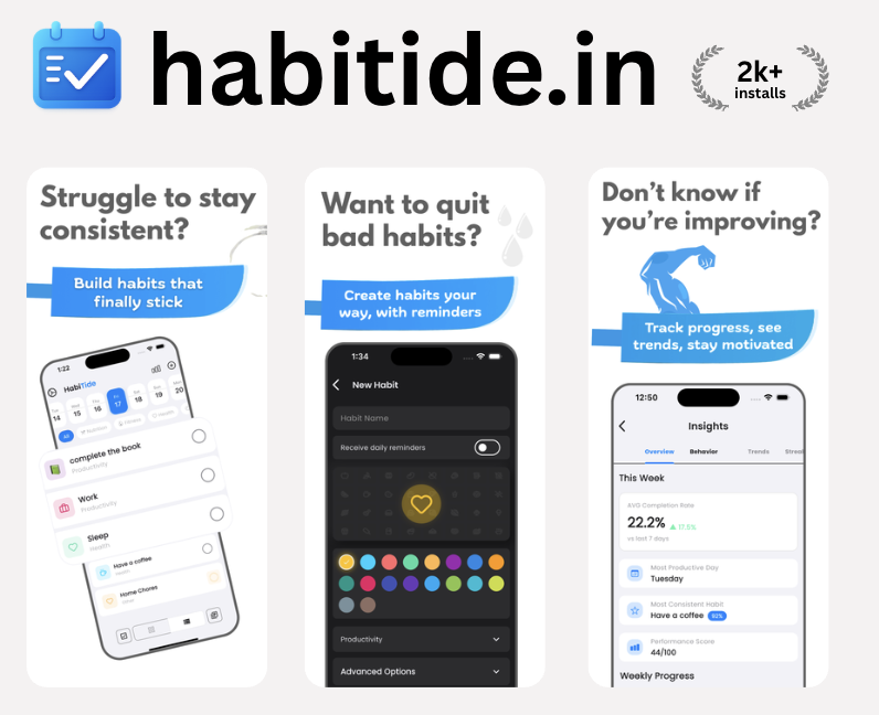 so i am planning a new update for the habitide with these changes - Multi Lang Support - Home Widgets - Light Mode - Minimal Habit Creation with Emojis - Modified Insights 2k+ install ๐ What other things you would like to have apart from this?