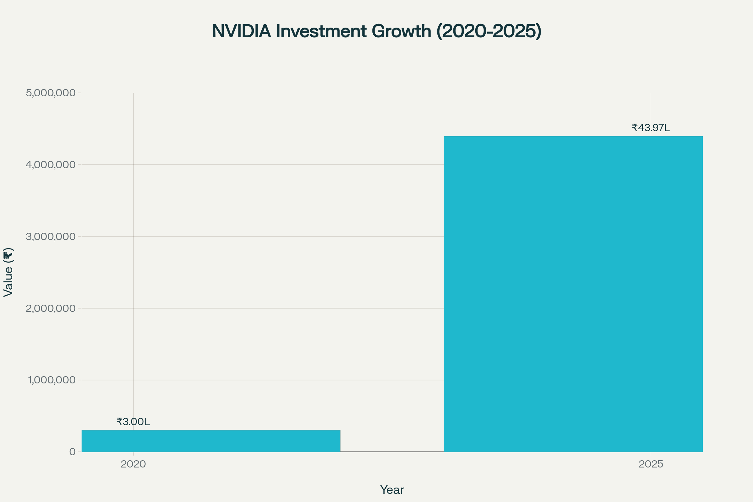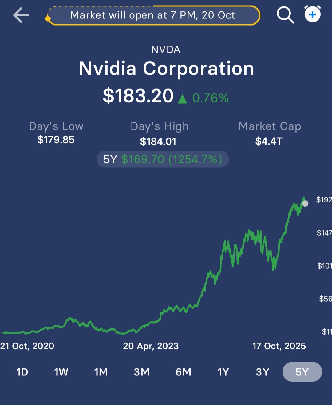 How many of you wasted 43₹ lakhs😂 Investment Start (Oct 2020): ₹3,00,000 NVIDIA Share Price (Oct 2020): $12.50 NVIDIA Share Price (Oct 2025): $183.22 Final Value (Oct 2025): ₹43,97,280 Total Growth: ~1,366%